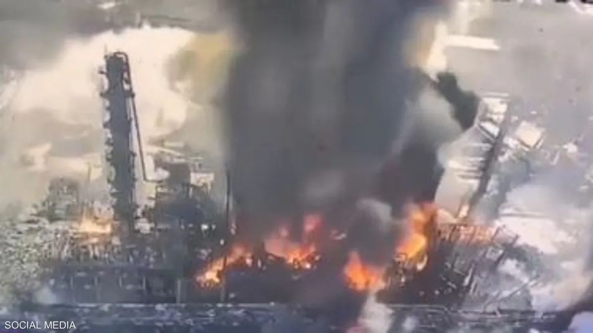 وأظهرت مقاطع فيديو وصور نشرها التلفزيون سحابة كثيفة من الدخان الأسود وألسنة لهب تتصاعد من المصنع، إضافة إلى مجموعة من عناصر الإطفاء خارج المبنى.