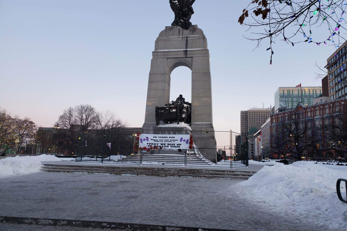 قام متظاهري “قافلة الحرية” في أوتاوا بهدم السياج الذي تم وضعه حول النصب التذكاري للحرب الوطنية.