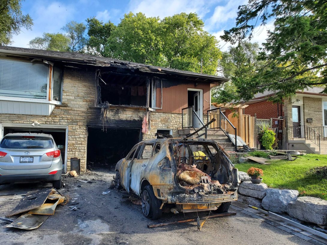 According to Mississauga Fire Platoon Chief Craig Dockeray, emergency crews arrived at a semi-detached house on The Credit Woodlands, south of Burnhamthorpe Road West, at 1:10 a.m. Thursday. The fire originated in the garage and spread to the second floor.